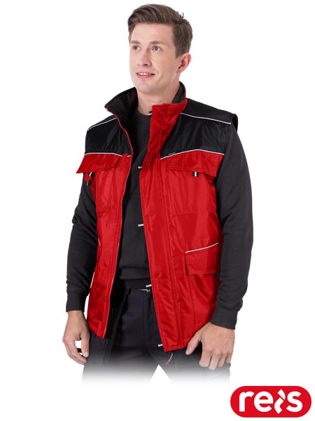 Bezrękawnik ochronny ocieplany, męski.- tkanina: 100% poliester o gramaturze 180 g/m2- wyściółka 100% poliester o gramaturze 120 g/m2- podszewka 100% poliester o gramaturze 155 g/m2- zapinany na zamek błyskawiczny z dodatkowym zapięciem na rzepy- kołnierz w formie stójki ocieplany polarem- dwie kieszenie w dolnej części oraz dwie na klatce piersiowej, w tym jedna z dodatkową kieszonką na telefon- kieszeń wewnętrzna- odblaskowe elementy- zapewnia doskonałą ochronę przed chłodem