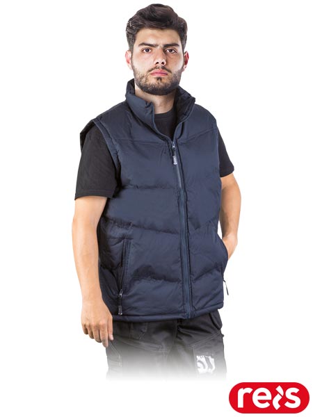 Pikowany bezrękawnik ochronny ocieplany, męski.- tkanina: 100% poliester powlekany PCV o gramaturze 150 g/m2- wyściółka 100% poliester o gramaturze 270 g/m2- podszewka 100% poliester o gramaturze 40 g/m2- zapinany na zamek błyskawiczny- kołnierz w formie stójki- dwie kieszenie w dolnej części zapinane na suwak- idealnie sprawdza się nie tylko podczas pracy, ale również uprawiania sportów