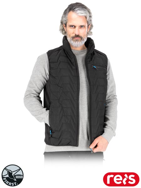 Pikowany bezrękawnik ochronny ocieplany, męski.- materiał główny: tkanina 100% poliester o gramaturze 83 g/m2- wstawki: tkanina 100% poliester o gramaturze 310 g/m2- wyściółka 100% poliester o gramaturze 160 g/m2- podszewka 100% poliester o gramaturze 60 g/m2- zapinany na zamek błyskawiczny- kołnierz w formie stójki- dwie kieszenie w dolnej części oraz jedna na klatce piersiowej zapinane na suwak- kieszeń wewnętrzna- ramiona oraz dół bezrękawnika wykończone elastyczną lamówką- fason: REGULAR