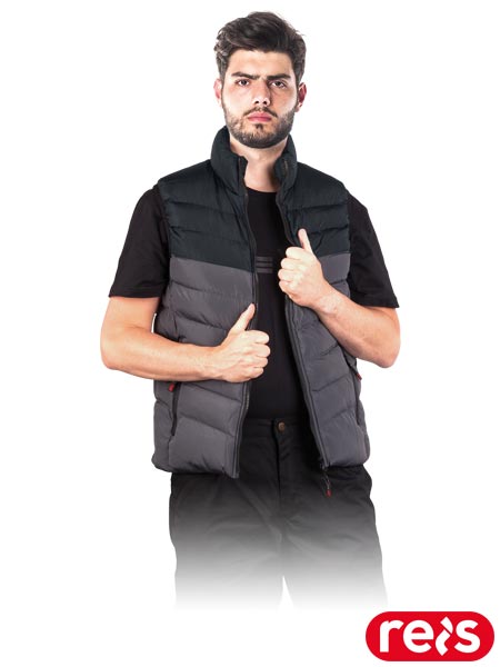Pikowany bezrękawnik ochronny ocieplany, męski.- tkanina: 100% poliester powlekany PCV o gramaturze 80 g/m2- wyściółka 100% poliester o gramaturze 260 g/m2- podszewka 100% poliester tafta 210T o gramaturze 50 g/m2- zapinany na zamek błyskawiczny- kołnierz w formie stójki- dwie kieszenie w dolnej części zapinane na suwak- doskonały nie tylko do pracy, ale i na co dzień