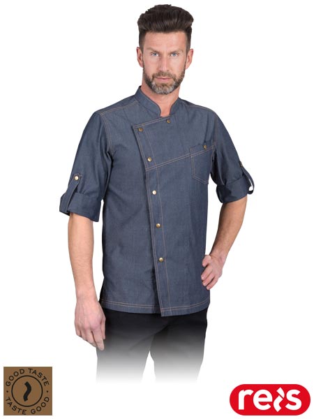Bluza kucharska z długim rękawem, męska.- tkanina: 65% poliester, 35% bawełna- gramatura 170 g/m2- zapinana na sześć zatrzasków- kołnierz w formie stójki- zewnętrzna kieszeń po lewej stronie bluzy- rękawy z możliwością wywinięcia i zapięcia- dół bluzy z rozcięciami po bokach- pranie w temperaturze do 40°C