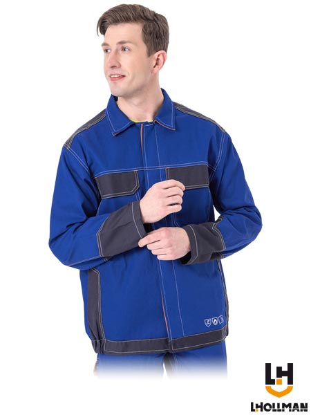 Bluza ochronna trudnopalna, męska.- tkanina: 100% bawełna- gramatura 310 g/m2- zapinana na guziki zasłonięte patką- wykończona kołnierzykiem- dwie kieszenie na klatce piersiowej zapinane na rzep- dół bluzy zakończony ściągaczem w bocznych partiach- odblaskowe elementy- doskonale chroni przed odpryskami stopionego metalu, oparzeniem podczas krótkotrwałego kontaktu z płomieniem, promieniowaniem cieplnym oraz ultrafioletowym występującym przy pracach z zastosowaniem łuku elektrycznego- fason: REGULAR- właściwości elektrostatyczne badane zgodnie z EN 1149-2 - rezystancja skrośna- zgodna z normami EN ISO 11611 (A1 A2), EN ISO 11612 (A1 A2 B1 C1) oraz EN ISO 13688
