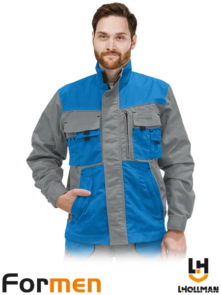 Bluza ochronna FORMEN, męska.- materiał główny: tkanina o splocie canvas 65% poliester, 35% bawełna o gramaturze 270g/m2- wstawki: tkanina 100% poliester Oxford 600D o gramaturze 240 g/m2 oraz elementy z tkaniny Cordura 100% nylon 500D o gramaturze 200 g/m2- zapinana na zamek błyskawiczny z dodatkowym zapięciem na rzepy- kołnierz w formie stójki- dwie kieszenie w dolnej części oraz pięć na klatce piersiowej z dodatkowymi wąskimi kieszonkami na przybory np. długopis- rękawy oraz dół bluzy z możliwością regulacji za pomocą nap- odblaskowe elementy- system wentylacji na plecach oraz pod pachami umożliwia cyrkulację powietrza i zwiększa komfort użytkowania- przedłużany tył bluzy- fason: REGULAR- testowana na zawartość szkodliwych dla zdrowia substancji zgodnie ze standardami OEKO-TEX® Standard 100