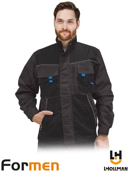Bluza ochronna FORMEN, męska.- materiał główny: tkanina o splocie canvas 65% poliester, 35% bawełna o gramaturze 270g/m2- wstawki: tkanina 100% poliester Oxford 600D o gramaturze 240 g/m2 oraz elementy z tkaniny Cordura 100% nylon 500D o gramaturze 200 g/m2- zapinana na zamek błyskawiczny z dodatkowym zapięciem na rzepy- kołnierz w formie stójki- dwie kieszenie w dolnej części oraz pięć na klatce piersiowej z dodatkowymi wąskimi kieszonkami na przybory np. długopis- rękawy oraz dół bluzy z możliwością regulacji za pomocą nap- odblaskowe elementy- system wentylacji na plecach oraz pod pachami umożliwia cyrkulację powietrza i zwiększa komfort użytkowania- przedłużany tył bluzy- fason: REGULAR- testowana na zawartość szkodliwych dla zdrowia substancji zgodnie ze standardami OEKO-TEX® Standard 100