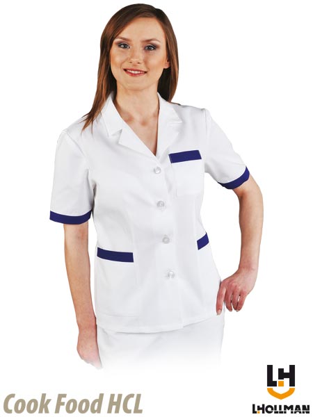 Bluza ochronna z krótkim rękawem, damska.- tkanina: 65% poliester, 35% bawełna- gramatura 200 g/m2- zapinana na guziki- wykończona kołnierzykiem- dwie kieszenie w dolnej części i jedna na klatce piersiowej- idealna dla służb medycznych, stosowana w laboratoriach i aptekach