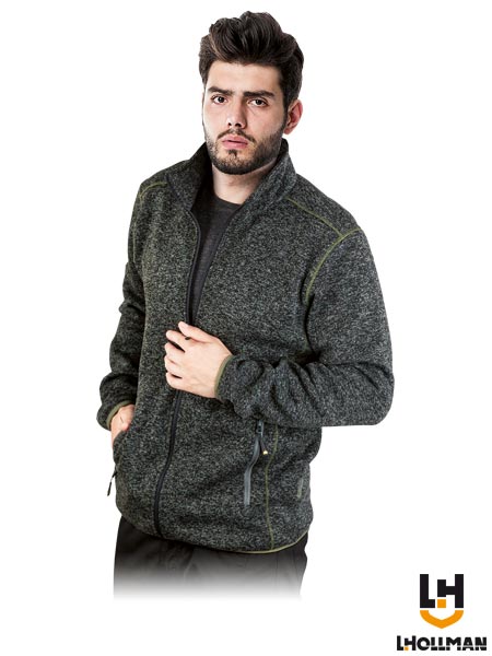Bluza ochronna, męska.- dzianina: 100% poliester- gramatura 310 g/m2- zapinana na zamek błyskawiczny- kołnierz w formie stójki- dwie kieszenie w dolnej części zapinane na suwak- rękawy oraz dół bluzy wykończone elastyczną lamówką