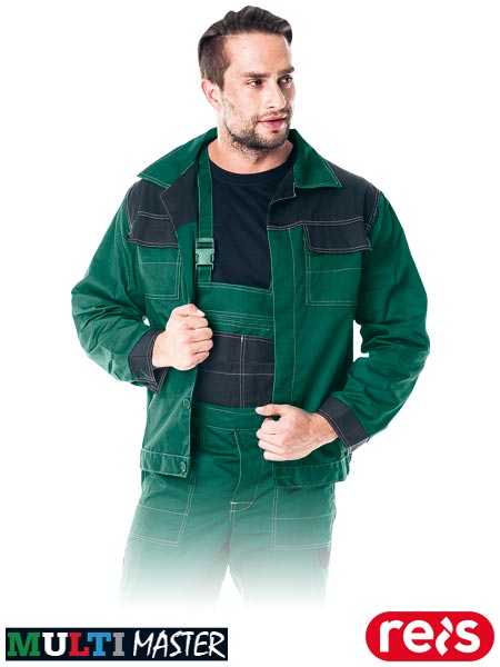 Bluza ochronna Multi Master.- tkanina: 65% poliester, 35% bawełna- gramatura 262 g/m2- zapinana na guziki- dwie kieszenie zapinane na rzep- mankiety przy rękawach zapinane na guzik- na dole bluzy gumka ściągająca, dzięki czemu bluza nie odstaje i lepiej dopasowuje się do użytkownika- otwory wentylacyjne pod pachami zapobiegają poceniu się, a tym samym zapewniają lepszy komfort użytkowania- sprawdzona jakość, udoskonalony design