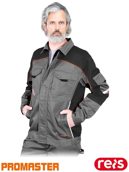 Bluza ochronna PROX.- tkanina: 65% poliester, 35% bawełna- gramatura 295-300 g/m2- wstawki z żółtego i pomarańczowego materiału 80% poliester, 20% bawełna- zapinana za zamek błyskawiczny z dodatkowym zapięciem na rzepy- rękawy zapinane na napy, dzięki czemu można je regulować- dwie kieszenie na klatce piersiowej zapinane na rzep oraz dwie po bokach- dodatkowa kieszeń na telefon komórkowy na rękawie bluzy- system wentylacji pod pachami- na dole bluzy gumka ściągająca, dzięki czemu bluza nie odstaje i zabezpiecza przed wiatrem- wstawki z elementów odblaskowych- nowoczesny design oraz kolorystyka