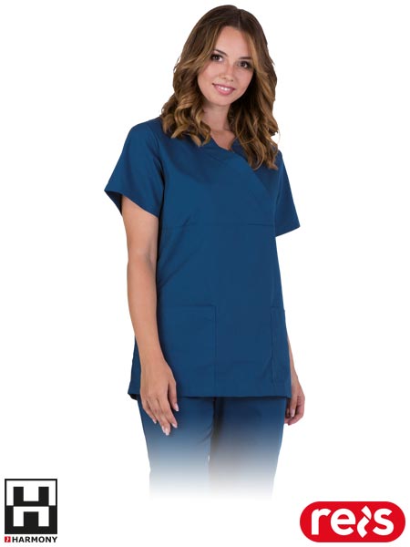 Bluza ochronna z krótkim rękawem TRISTI, damska.- tkanina: 80% poliester, 20% bawełna- gramatura 145 g/m2- posiada dwie kieszenie boczne- bez guzików - zakładana przez głowę- dekolt w szpic- idealna dla branży kosmetycznej, medycznej, jak i chemicznej- stosowana do pracy w laboratoriach- pranie w temperaturze do 60°C