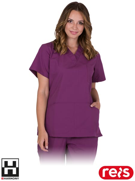Bluza ochronna z krótkim rękawem VILANELLA, damska.- tkanina: 65% poliester, 35% bawełna- gramatura 165 g/m2- posiada kieszonkę na klatce piersiowej oraz dwie kieszenie boczne- bez guzików - zakładana przez głowę- dekolt w szpic- idealna dla branży kosmetycznej, medycznej, jak i chemicznej- stosowana do pracy w laboratoriach- pranie w temperaturze do 60°C
