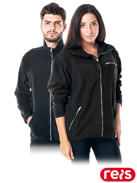 Bluza ochronna.- dzianina polarowa: 100% poliester- gramatura 280 g/m2- zapinana na zamek błyskawiczny- kołnierz w formie stójki- dwie kieszenie w dolnej części oraz jedna na klatce piersiowej zapinane na suwak- rękawy oraz dół bluzy wykończone elastyczną lamówką
