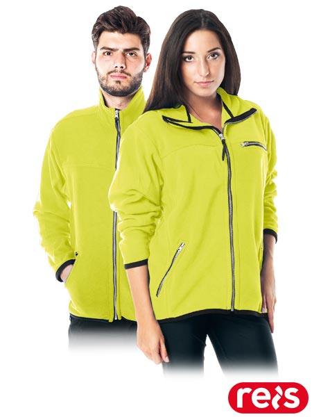 Bluza ochronna.- dzianina polarowa: 100% poliester- gramatura 280 g/m2- zapinana na zamek błyskawiczny- kołnierz w formie stójki- dwie kieszenie w dolnej części oraz jedna na klatce piersiowej zapinane na suwak- rękawy oraz dół bluzy wykończone elastyczną lamówką