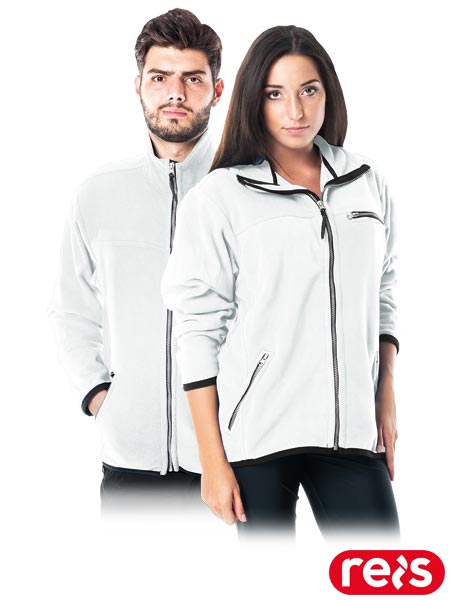Bluza ochronna.- dzianina polarowa: 100% poliester- gramatura 280 g/m2- zapinana na zamek błyskawiczny- kołnierz w formie stójki- dwie kieszenie w dolnej części oraz jedna na klatce piersiowej zapinane na suwak- rękawy oraz dół bluzy wykończone elastyczną lamówką
