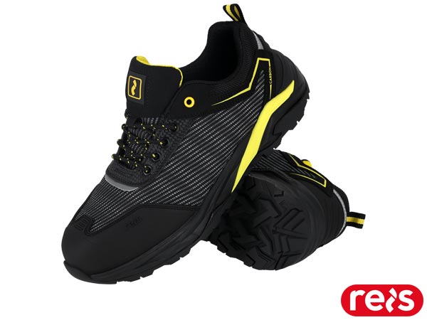 Buty bezpieczne CARBON, męskie.- wykonane z tkaniny poliestrowej w połączeniu z zamszową skórą syntetyczną (microfibrą) oraz wstawkami z TPU- buty typu półbut, sięgające przed kostkę- sznurowane- podeszwa antypoślizgowa, olejoodporna, antyelektrostatyczna, wykonana z EVA oraz gumy- absorpcja uderzeń pod piętą- niemetalowa, kompozytowa wkładka zabezpieczająca stopę przed przekłuciem o nacisku 1100N- kompozytowy podnosek wytrzymały na uderzenia z energią 200 J oraz zgniecenia do 15 kN- gumowe oblanie, zapobiegające ścieraniu się buta- bez metalowych wykończeń - METAL FREE- elementy odblaskowe- kategoria S3S FO SR