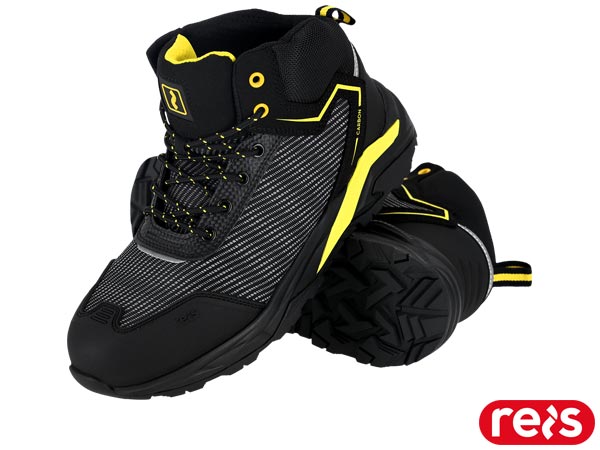 Buty bezpieczne CARBON, męskie.- wykonane z tkaniny poliestrowej w połączeniu z zamszową skórą syntetyczną (microfibrą) oraz wstawkami z TPU- buty typu trzewik, zakrywające kostkę- sznurowane- podeszwa antypoślizgowa, olejoodporna, antyelektrostatyczna, wykonana z EVA oraz gumy- absorpcja uderzeń pod piętą- niemetalowa, kompozytowa wkładka zabezpieczająca stopę przed przekłuciem o nacisku 1100N- kompozytowy podnosek wytrzymały na uderzenia z energią 200 J oraz zgniecenia do 15 kN- gumowe oblanie, zapobiegające ścieraniu się buta- bez metalowych wykończeń - METAL FREE- elementy odblaskowe- kategoria S3S FO SR