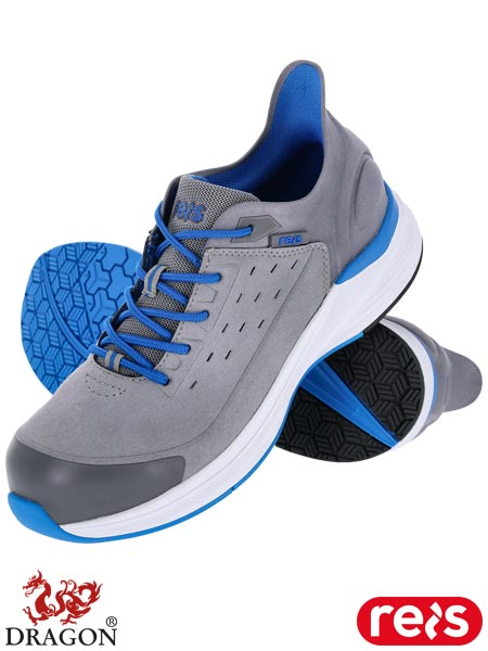 Buty bezpieczne URLIK, męskie.- wykonane z zamszowej skóry syntetycznej (mikrofibra) w połączeniu z dzianym materiałem tekstylnym oraz TPU- buty typu półbut, sięgające przed kostkę- sznurowane- podeszwa antypoślizgowa, olejoodporna, antyelektrostatyczna wykonana z tworzywa EVA oraz gumy- absorpcja uderzeń pod piętą- niemetalowa, kevlarowa wkładka zabezpieczająca stopę przed przekłuciem o nacisku 1100N- kompozytowy podnosek wytrzymały na uderzenia z energią 200 J oraz zgniecenia do 15 kN- odblaskowe elementy- kategoria S1PS FO SR