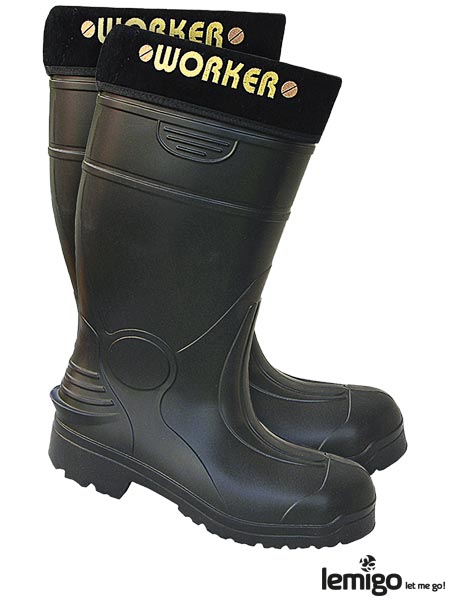 Buty bezpieczne ocieplane.- wykonane z tworzywa EVA- wymienny ocieplacz- sztruksowy kołnierz z haftem- podeszwa urzeźbiona, antypoślizgowa oraz odporna na olej napędowy- absorpcja uderzeń pod piętą- odporność spodu na przebicie siłą 1100N- stalowy podnosek wytrzymały na uderzenia z energią 200 J oraz zgniecenia do 15 kN- aluminiowa izolacja podstopia- przeznaczone do użytkowania w temperaturze do -30°C- kategoria: SB P SRB FO CI E- spełniają wymagania norm EN20345 oraz EN20344
