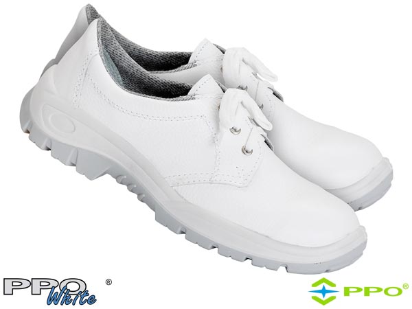 Półbuty zawodowe bez podnoska.- antyelektrostatyczne- wierzch obuwia wykonany z licowych skór bydlęcych białych- bezpośrednia technologia łączenia podeszwy z cholewką, dwustopniowy wtrysk poliuretanu i poliuretanu termoplastycznego- odporne na temperaturę w krótkotrwałym kontakcie do 180 °C- wyposażone w wyjmowaną higroskopijną wyściółkę, posiadającą właściwości przeciwpotne- szczególnie zalecane dla przemysłu spożywczego- podeszwa z dwuwarstwowego poliuretanu odpornego na oleje, smary, benzynę i inne rozpuszczalniki organiczne- obuwie jest wolne od substancji szkodliwych a tym samym neutralne na czynniki panujące w zakładach- przystosowane do pracy w systemie HACCP (przemysł spożywczy)- kategoria O1 FO SR- spełniają wymagania normy EN20347