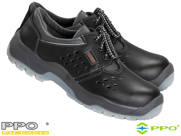 Półbuty bezpieczne ze stalowym podnoskiem.- antyelektrostatyczne- podeszwa dwuwarstwowa- bezpośrednia technologia łączenia podeszwy z cholewką, dwustopniowy wtrysk poliuretanu i poliuretanu termoplastycznego- wierzch obuwia wykonany z licowych skór bydlęcych gładkich o zmniejszonej absorbcji wody z wstawkami z oddychającego materiału- urzeźbienie czubka podeszwy dodatkowo zabezpiecza przed poślizgiem przy pracach na pochyłych terenach- wyposażone w wewnętrzny, dopasowany do naturalnego kształtu stopy podnosek, chroniący przed uderzeniem 200 J- wyposażone w wyjmowaną higroskopijną wyściółkę- odporne na temperaturę w krótkotrwałym kontakcie do 120 °C- lekkie, trwałe i wytrzymałe, skutecznie łagodzą nierówności podłoża oraz odporne na ścieranie, przecięcia i pękanie- szczególnie zalecane do pracy na gładkich nawierzchniach nowoczesnych hal produkcyjnych- kategoria S1 FO- spełniają wymagania norm EN20345, EN20344
