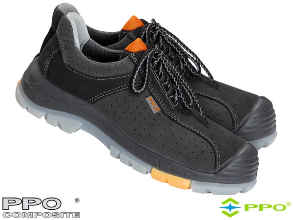 Półbuty bezpieczne z kompozytowym podnoskiem.- cholewki wykonane ze skór welurowych oraz nubuku o wysokim współczynniku przepuszczalności pary wodnej- podszewka z materiału Super Royal ® dającego uczucie suchości i komfortu- podeszwa poliuretanu i poliuretanu termoplastycznego PU/TPU- z perforowanym podnoskiem kompozytowym AirTec ® chroniącym przed uderzeniami z energią do 200 J- pochłania energię w części piętowej- odporne na temperaturę w krótkotrwałym kontakcie do 120 °C- lekkie, trwałe i wytrzymałe, skutecznie łagodzą nierówności podłoża oraz odporne na ścieranie, przecięcia i pękanie- wyposażone w miękką, wygodną, przyjazną skórze stopy, higroskopijną wyściółkę z filtrem aktywnego węgla o właściwościach przeciwgrzybicznych, przeciwpotnych i antybakteryjnych- gumowe oblanie, zapobiegające ścieraniu się czubka buta podczas tarcia nim o podłoże- kategoria S1 SRC- spełniają wymagania norm EN20345, EN20344