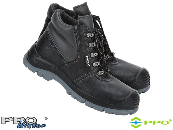 Buty bezpieczne ocieplane.- cholewki wykonane ze skór licowych tłoczonych o zmniejszonej nasiąkliwości wody i wysokim współczynniku przepuszczalności pary wodnej- podszewka ocieplana na bazie wełny naturalnej- kołnierz miękko wypełniony pianką- buty typu trzewik, sięgające za kostkę- sznurowane- podeszwa antyelektrostatyczna, odporna na oleje, benzynę i inne rozpuszczalniki organiczne, wykonana z podwójnego poliuretanu, o podwyższonej odporności na minusowe temperatury- absorpcja energii w części piętowej- wkładka antyprzebiciowa- kompozytowy podnosek Airtec, w którym specjalnie rozmieszczone otworki gwarantują stopie naturalną oddychalność- gumowe oblanie, zapobiegające ścieraniu się czubka buta podczas tarcia nim o podłoże- bez metalowych wykończeń - METAL FREE- odblaskowa biza w kołnierzu zapewnia lepszą widoczność pracownika i bezpieczeństwo pracy- wyprofilowany obcas, chroni nogę przed skręceniem- kategoria S3L FO CI SR- spełniają wymagania norm EN20345, EN20344