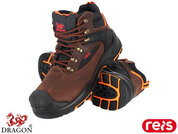 Buty bezpieczne FINO, męskie.- wykonane ze skóry bydlęcej nubuk typu crazy horse w połączeniu z tkaniną Oxford- buty typu trzewik, zakrywające kostkę- sznurowane- podeszwa antypoślizgowa, olejoodporna, antyelektrostatyczna wykonana wykonana z poliuretanu oraz gumy- absorpcja uderzeń pod piętą- część spodnia buta odporna jest na kontakt z gorącym podłożem (temp. 300°C)- kompozytowa, kevlarowa wkładka zabezpieczająca stopę przed przekłuciem o nacisku 1100N- kompozytowy podnosek z włókna szklanego wytrzymały na uderzenia z energią 200 J oraz zgniecenia do 15 kN- gumowe oblanie, zapobiegające ścieraniu się czubka buta podczas tarcia nim o podłoże- kategoria S3L SR FO HRO