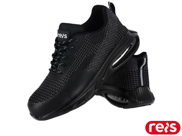 Buty bezpieczne, męskie.- wykonane z dzianiny poliestrowej w połączeniu z TPU- buty typu półbut, sięgające przed kostkę- sznurowane- podeszwa antypoślizgowa, olejoodporna wykonana z poliuretanu- stalowy podnosek wytrzymały na uderzenia z energią 200 J oraz zgniecenia do 15 kN- elementy odblaskowe- kategoria SB FO SR