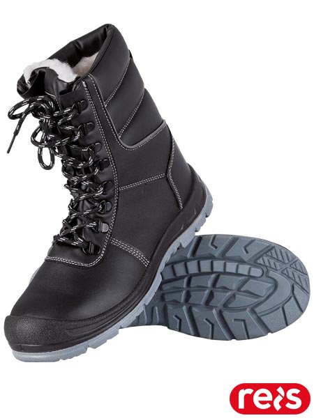Buty bezpieczne ocieplane NORDREIS, męskie.- wykonane z wodoodpornej skóry bydlęcej- buty typu kozak, zakrywające kostkę oraz część łydki- sznurowane- ocieplane kożuszkiem- podeszwa antypoślizgowa, olejoodporna, antyelektrostatyczna, wykonana z poliuretanu- absorpcja uderzeń pod piętą- stalowa wkładka zabezpieczająca stopę przed przekłuciem o nacisku 1100N- stalowy podnosek wytrzymały na uderzenia z energią 200 J oraz zgniecenia do 15 kN- gumowe oblanie, zapobiegające ścieraniu się czubka buta podczas tarcia nim o podłoże- dodatkowo elementy odblaskowe po bokach butów- kategoria S3 SRC- spełniają wymagania norm EN20345 oraz EN20344