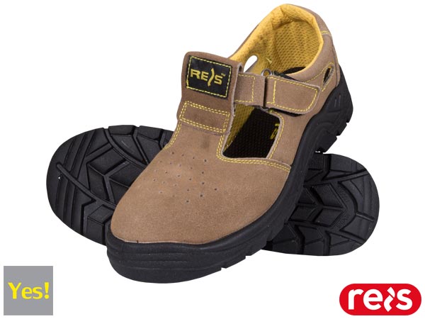 Buty bezpieczne YESSUN.- wykonane ze skóry zamszowej- buty typu sandał- podeszwa antypoślizgowa, olejoodporna, antyelektrostatyczna wykonana z poliuretanu o podwójnej gęstości- absorpcja uderzeń pod piętą- podszewka wykonana z materiału cambrelle absorbującego pot- stalowy podnosek wytrzymały na uderzenia z energią 200 J oraz zgniecenia do 15 kN- kategoria S1 SRC- spełniają wymagania norm EN20345 oraz EN20344