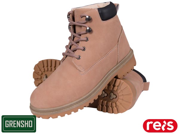 Buty typu trzewik HORTEN.- wykonane ze skóry syntetycznej- buty typu trzewik, sięgające za kostkę- sznurowane- podeszwa wykonana z PCV- lekkie i wygodne, zapewniają komfort użytkowania- kolor LPI w odcieniu pudrowego różu