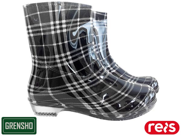 Buty damskie krótkie typu kalosz CHECK.- wykonane z PCV- sięgające za kostkę- modna kolorystyka- wodoodporne, idealne na deszczową pogodę