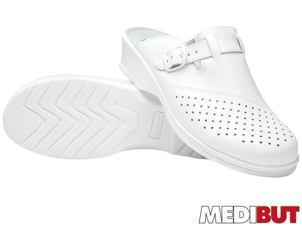 Klapki damskie na koturnie.- spód PU z profilem ortopedycznym- cholewka z perforacją wykonana ze skóry naturalnej z powłoką odporną na mycie- możliwość regulacji tęgości- wyściółka wykonana z naturalnej skóry welurowej- protektor antypoślizgowy- podeszwa odporna na oleje, tłuszcze roślinne i zwierzęce- spełniają wymagania normy EN20347