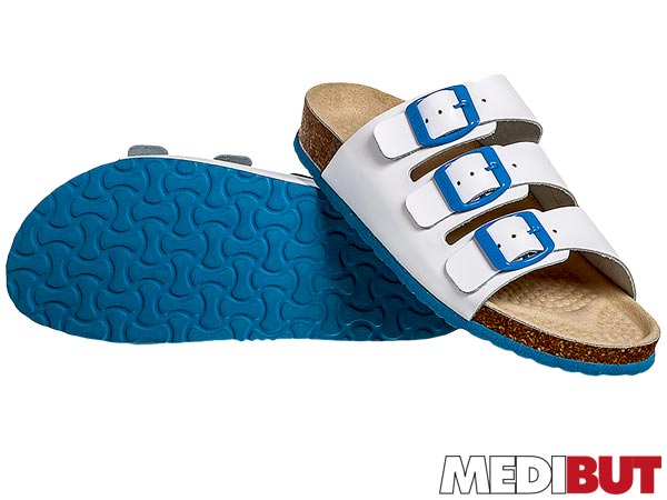 Obuwie na wkładzie korkowo-gumowym.- pełny profil ortopedyczny- cholewka skórzana pokryta powłoką ułatwiającą mycie i dezynfekcję- możliwość regulacji tęgości dzięki trzem paskom z klamrami- spód z urzeźbieniem przeciwpoślizgowym- wyściółka ze skóry welurowej- spełniają wymagania normy EN20347