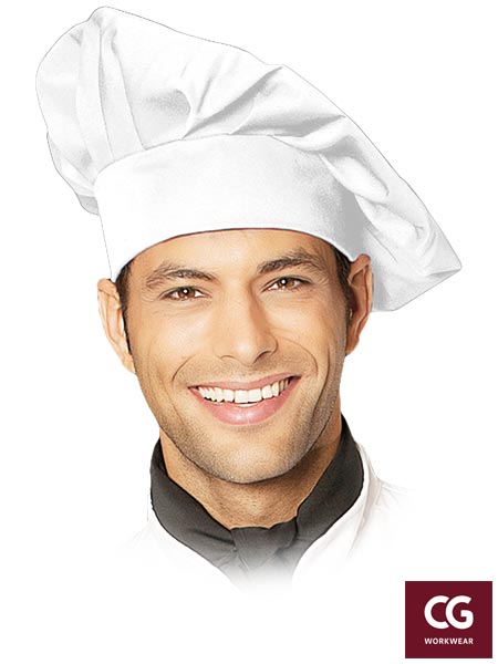 Czapka kucharska wysoka.- materiał: 65% poliester / 35% bawełna- gramatura: 215 g/m2- możliwość regulacji za pomocą rzepu- może być prana w temperaturze do 95° C