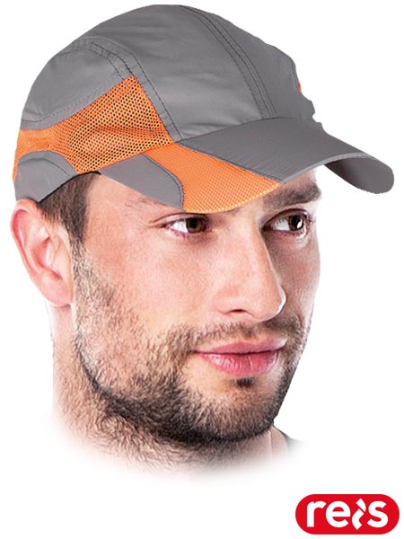 Czapka z daszkiem.- 100% poliester- gramatura 260 g/m2- usztywniany daszek- zapinana na zatrzask z możliwością regulacji- wstawki wykonane z siatki zwiększają komfort użytkowania- idealna na upalne dni