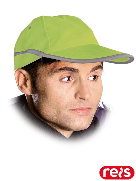 Czapka z daszkiem.- tkanina: 100% poliester- waga sztuki około 180 g- usztywniany daszek- wykończona odblaskowym paskiem, co zwiększa widoczność użytkownika- zapinana na rzep- 6-panelowa- idealna dla drogowców