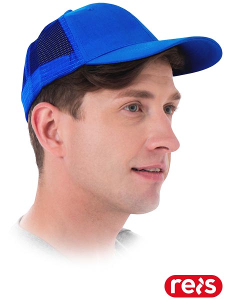Czapka z daszkiem.- tkanina: 50% poliester, 50% bawełna- waga sztuki około 175 g- usztywniany daszek i przód czapki- zapinana na rzep z możliwością regulacji- tył czapki wykonany z siatki co zwiększa komfort użytkowania- 6-panelowa- idealna na upalne dni