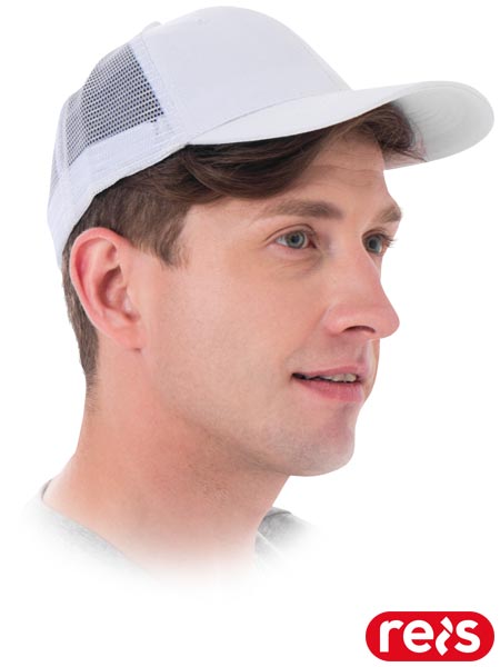 Czapka z daszkiem.- tkanina: 50% poliester, 50% bawełna- waga sztuki około 175 g- usztywniany daszek i przód czapki- zapinana na rzep z możliwością regulacji- tył czapki wykonany z siatki co zwiększa komfort użytkowania- 6-panelowa- idealna na upalne dni