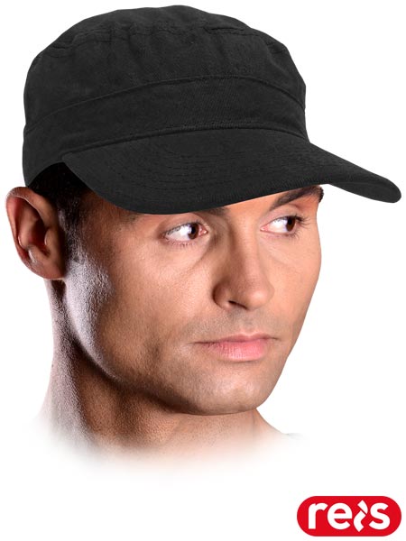 Czapka z daszkiem.- tkanina: 100% bawełna- waga sztuki około 260 g- usztywniany daszek- regulowana na rzep- po bokach otwory wentylacyjne zwiększające komfort użytkowania