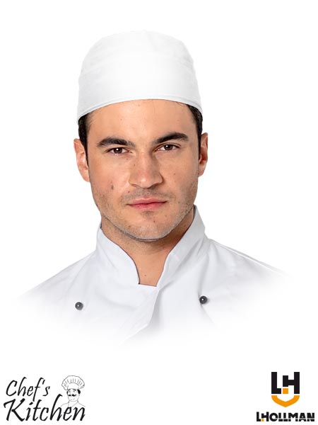 Krótka czapka kucharska z serii Chefs Kitchen.- tkanina o splocie twill: 65% poliestru, 35 % bawełny- gramatura 245 g/m2- odpowiednia do prania przemysłowego (maksymalna temperatura 95°C)- parametry tkaniny zwiększają skuteczność usuwania plam- płaski wierzch czapki- od połowy wywijana