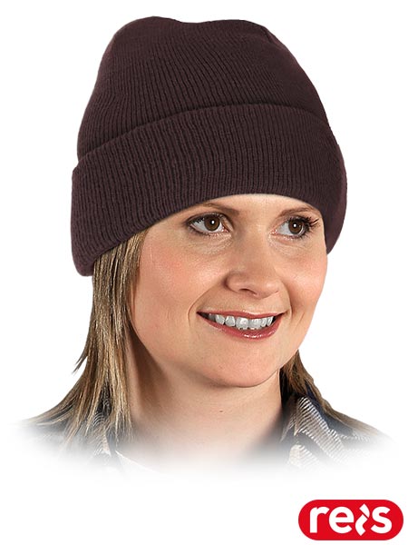 Czapka zimowa.- dzianina: 100% przędza akrylowa- waga sztuki 60 g- wymiary: na płasko 19 cm, po rozciągnięciu 38 cm- wywijana, można regulować jej długość