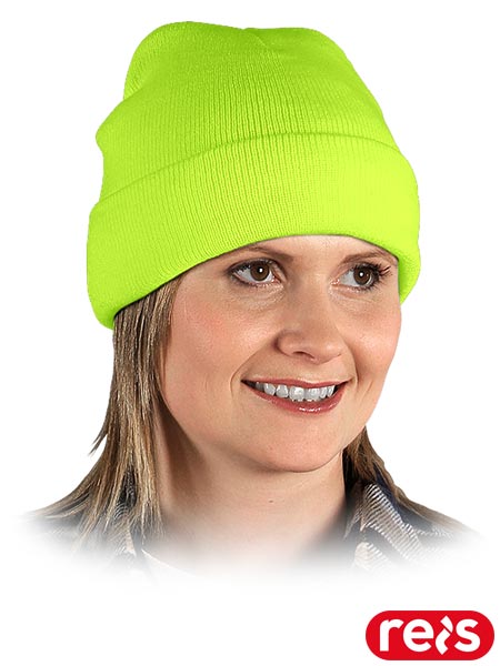 Czapka zimowa.- dzianina: 100% przędza akrylowa- waga sztuki 60 g- wymiary: na płasko 19 cm, po rozciągnięciu 38 cm- wywijana, można regulować jej długość