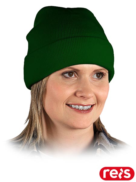 Czapka zimowa.- dzianina: 100% przędza akrylowa- waga sztuki 60 g- wymiary: na płasko 19 cm, po rozciągnięciu 38 cm- wywijana, można regulować jej długość