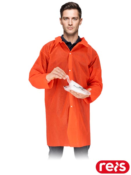 Fartuch polipropylenowy.- włóknina: 100% polipropylen- gramatura 45 g/m2- zapinany na napy- pod szyją wykończony kołnierzykiem- długi rękaw