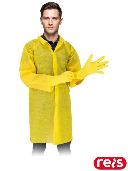 Fartuch polipropylenowy.- włóknina: 100% polipropylen- gramatura 45 g/m2- zapinany na napy- pod szyją wykończony kołnierzykiem- długi rękaw