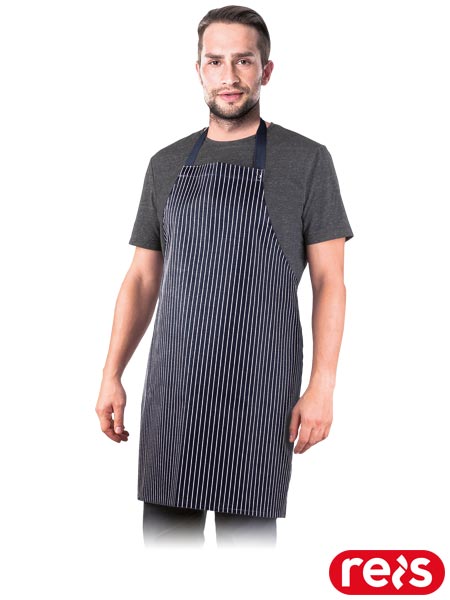 Fartuch przedni.- materiał: 65% poliester, 35% bawełna- gramatura 190 g/m2- wiązany z tyłu na paski dzięki czemu możliwe jest lepsze dopasowanie fartucha do sylwetki- na szyi zapinany na napy z możliwością regulacji długości- możliwość prania (bez nadruku) do 60°C- idealny do pracy w gastronomii