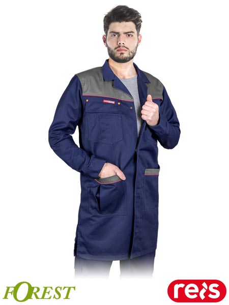 Fartuch ochronny FOREST, wykonany z wysokiej jakości materiału.- tkanina: 65% poliester, 35% bawełna- gramatura 290 g/m2- zapinany na napy- czterokieszeniowy, w tym dwie górne kieszenie na napy - jedna z nich przedzielona z miejscem na telefon- dodatkowa kieszeń na rękawie- dwie kieszenie wewnętrzne: jedna zasuwana, druga zapinana na guzik- rękawy wykończone zapięciem na napy- wysoka jakość materiału gwarantuje wytrzymałość przez długi czas użytkowania