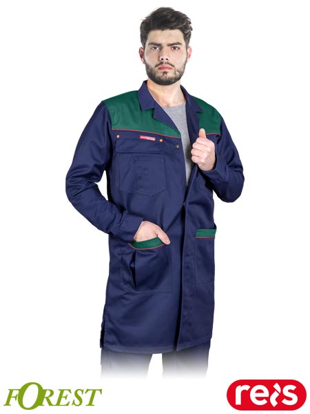 Fartuch ochronny FOREST, wykonany z wysokiej jakości materiału.- tkanina: 65% poliester, 35% bawełna- gramatura 290 g/m2- zapinany na napy- czterokieszeniowy, w tym dwie górne kieszenie na napy - jedna z nich przedzielona z miejscem na telefon- dodatkowa kieszeń na rękawie- dwie kieszenie wewnętrzne: jedna zasuwana, druga zapinana na guzik- rękawy wykończone zapięciem na napy- wysoka jakość materiału gwarantuje wytrzymałość przez długi czas użytkowania