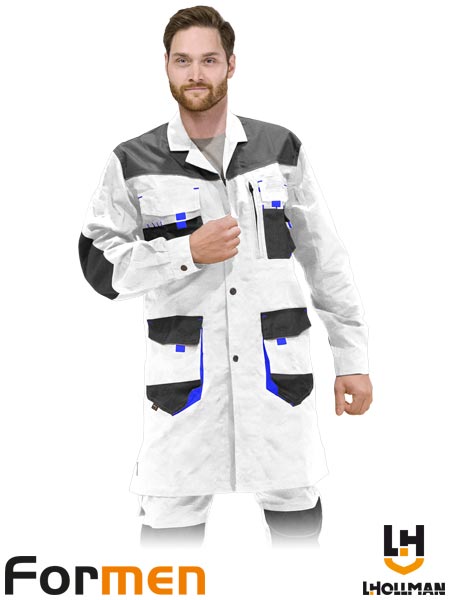 Fartuch ochronny FORMEN.- 65% poliester, 35% bawełna- gramatura 270 g/m2- zapinany na napy- w partii pasa z tyłu fartucha pasek z tego samego materiału- dwie kieszenie na klatce piersiowej na rzepy, w tym jedna na telefon oraz dwie wąskie kieszonki na przybory np. długopis- rękawy zapinane na napy- na ramionach, kieszeniach oraz łokciach dodatkowe wzmocnienie co zwiększa wytrzymałość fartucha na przetarcia- staranne wykonanie oraz zwiększona wytrzymałość zapewniają wysoki komfort użytkowania- certyfikat OEKO-TEX® Standard 100 (testy na zawartość szkodliwych dla zdrowia substancji)- nowy krój kieszeni, zwiększona wytrzymałość dzięki zastosowaniu wstawek z materiału Cordura