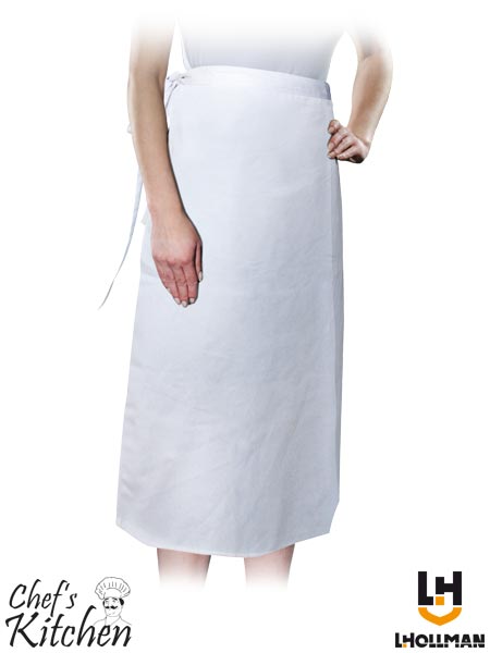 Zapaska kucharska z linii Chefs Kitchen.- 65% poliestru, 35 % bawełny- gramatura 245 g/m2- odpowiednia do prania przemysłowego (maksymalna temperatura 95°C)- parametry tkaniny zwiększają skuteczność usuwania plam z odzieży- przednia zapaska wiązana w pasie- używana w restauracjach oraz kuchniach domowych